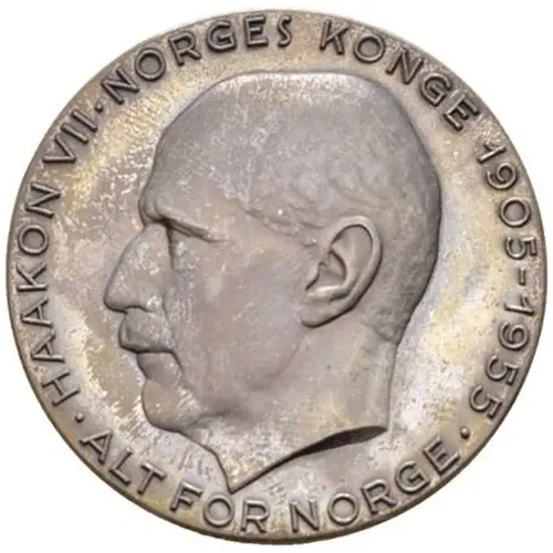 | Obverse lettering | HAAKON VII·NORGES KONGE 1905-1955 ·ALT FOR NORGE· |