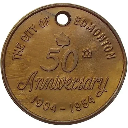 | Obverse lettering | THE CITY OF EDMONTON 50th Anniversary 1904 - 1954 |