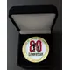 Silhouette of a girl offering her hand to a British soldier with a large red numbers (80) behind them. Legend around. |