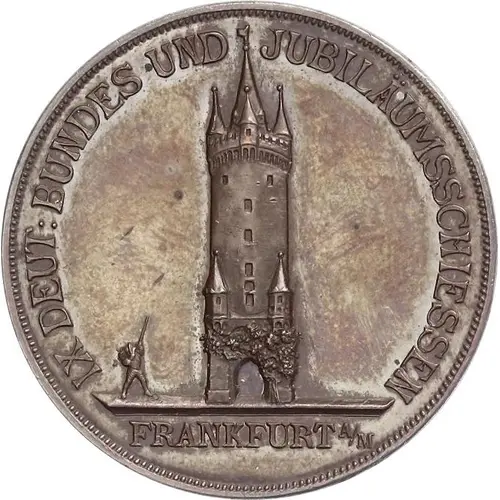 | Leyenda del anverso | IX DEUT: BUNDES UND JUBILÄUMSSCHIESSEN FRANKFURT A/M |