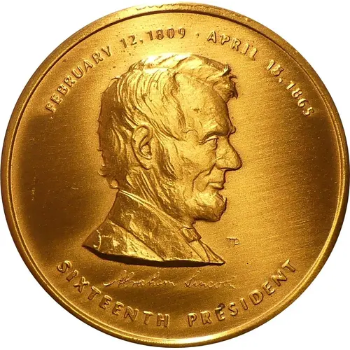 Profile of Lincoln looking to the right. Legend on 2 curved lines above and below, handwritten signature of Lincoln under the neck. The engraver`s signature in front of the collar. |