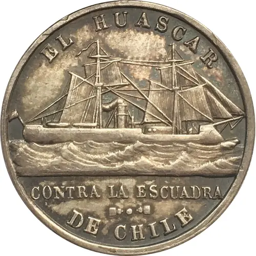| Obverse lettering | EL HUASCAR CONTRA LA ESCUADRA DE CHILE |
