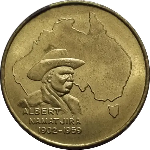 | Obverse description | Albert Namatjira wearing a bushman`s hat in front of a Map of Australia. |