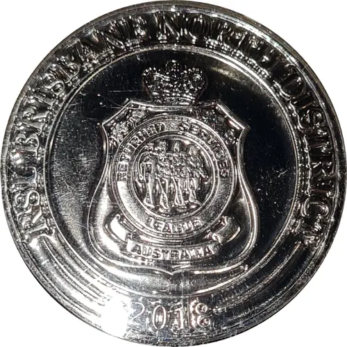 | Obverse lettering | RSL BRISBANE NORTH DISTRICT 2018 RETURNED SERVICES LEAGUE AUSTRALIA |
