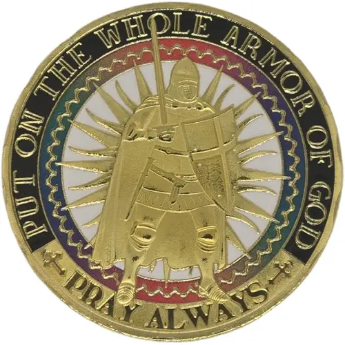 | Légende du revers | BREASTPLATE OF RIGHTEOUSNESS HELMET OF SALVATION SHIELD OF FAITH GIRD WITH TRUTH LOINS GOSPEL OF PEACE FEET SWORD OF THE SPIRIT EPHESIANS 6:11-18 |