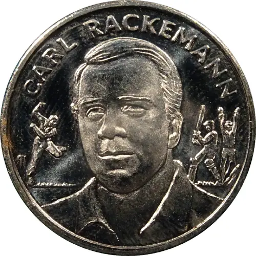 | Obverse description | Bust of Test Cricketer Carl Rackemann with Bowler left and and a Batsman bowled out to the right. |