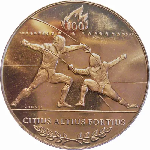 | Obverse lettering | 100 JIMENEZ CITIUS ALTIUS FORTIUS |