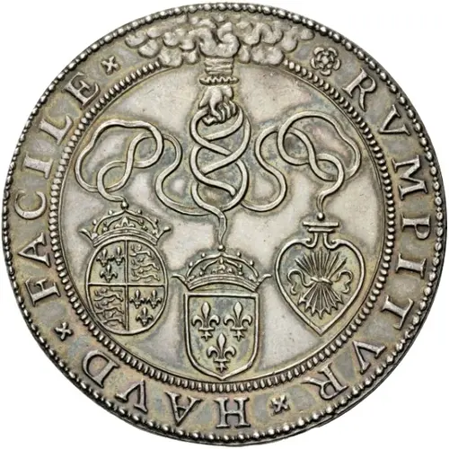 | Obverse description | Hand issuing from heaven holds a cord connecting the shields of England, France and the United Provinces. |