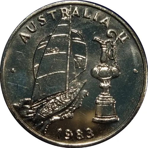 | Obverse description | Depiction of the racing yacht Australia II sailing to victory in the 1983 America`s Cup. A depiction of the `America`s Cup` to the right. |