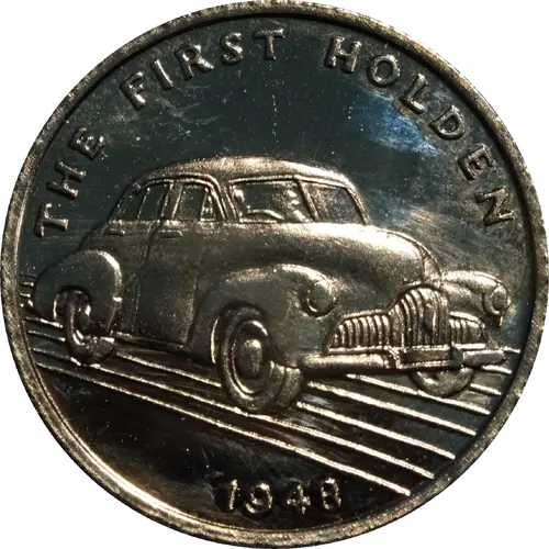 | Obverse description | Depiction of the first Holden Car, the 48-215 or `FX` speeding to the right. |