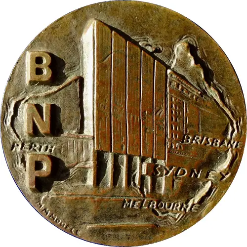 | Reverse lettering | BANQUE NATIONALE DE PARIS IN AUSTRALIA SINCE 1881 OPENING OF BNP HOUSE 1977 |
