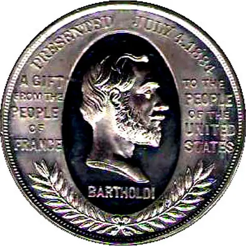 | Obverse lettering | PRESENTED JULY 4. 1884 A GIFT FROM THE PEOPLE OF FRANCE TO THE PEOPLE OF THE UNITED STATES BARTHOLDI |