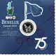 A map of the Benelux, France and the UK; text along the rim. |