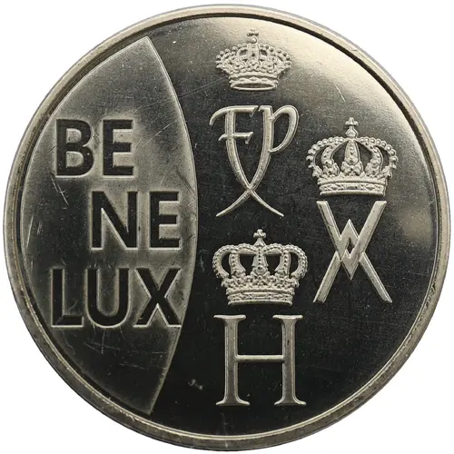 | Reverse description | A lion in front of the flag of the Benelux.. |