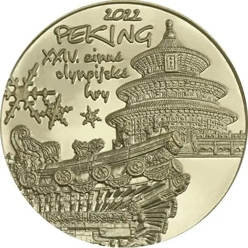 | Descrizione del dritto | The obverse side of the token, is dedicated to the sights of Beijing - the Temple of Heaven and the decorated roofs of the Forbidden City. |