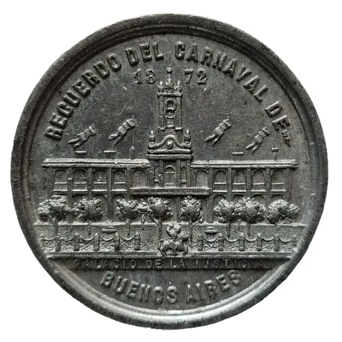 | Obverse lettering | RECUERDO DEL CARNAVAL DE - 1872 PALACIO DE LA JUSTICIA BUENOS AIRES (Translation: SOUVENIR OF THE CARNIVAL OF BUENOS AIRES 1872 PALACE OF JUSTICE) |