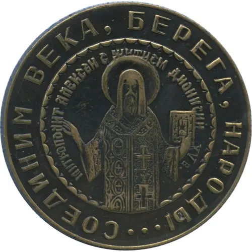 | 正面铭文 | СОЕДИНИМ ВЕКА, БЕРЕГА, НАРОДЫ МИТРОПОЛИТ АЛЕКСИЙ С ЖИТИЕМ ДИОНИСИЙ XV В. (Translation: CONNECT THE CENTURY, THE COAST, THE PEOPLE Metropolitan Alexis with the Life of Dionysius XV Century) |