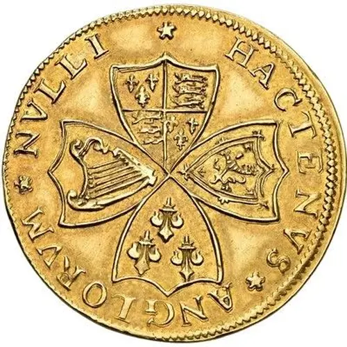 | Obverse description | (fr) Four heart-shaped shields representing England, Scotland, France, and Ireland, united at their bases in the center. |