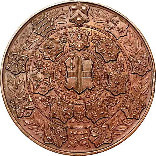 | Popis líce | Large central shielded arms, two lines of shieled arms surrounding with one with rose and one with laurel wreath. |