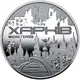The inscription - ХАРКІВ, in which the letter I is presented in the form of a candle / МІСТО ГЕРОЇВ, which divides the field of the medal into two parts, united by a common idea: in the upper part of the composition, buildings battered and mutilated by shells and bombs are depicted, in the lower one is a stylized panorama of the city with its historical monuments and the Polovtsian stone women from Mount Kremenets near Izyum, monuments of sacred art (IX-XIII centuries). |