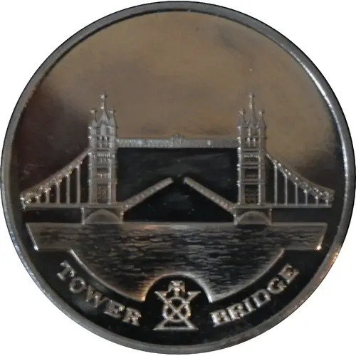 | Obverse description | A picture of Tower Bridge with words below. |