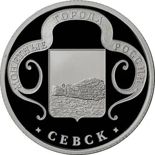 | Opis rewersu | Relief image of the `Sevsk Czech`, minted in this city. It depicts the Russian double-headed eagle under three crowns and with an inscription containing the initial letters of the name and titles of the tsars Ivan and Peter Alekseevich. The background image is a fragment of a miniature from the 16th century Illustrated Chronicle Collection, illustrating the minting of coins. The background is made using laser matting. |