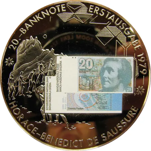 | Obverse lettering | 20.- BANKNOTE HORACE-BÉNÉDICTE DE SAUSSURE * ERSTAUSGABE 1979 |
