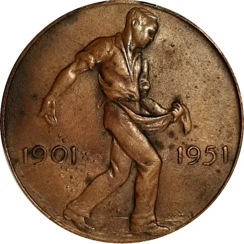 | Obverse description | A man throwing seed on the ground with the dates, 1901-1951. |