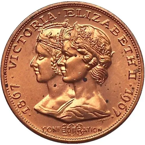| Reverse lettering | 1867 Centennial of Canadian Confederation 1967 Le Centenaire de la Confederation Canadienne CAN ART DIES |