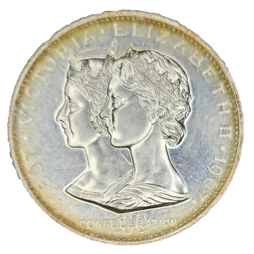 | Obverse lettering | • 1867 • VICTORIA • ELIZABETH II • 1967 • LOMBARDO CONFEDERATION 100 |