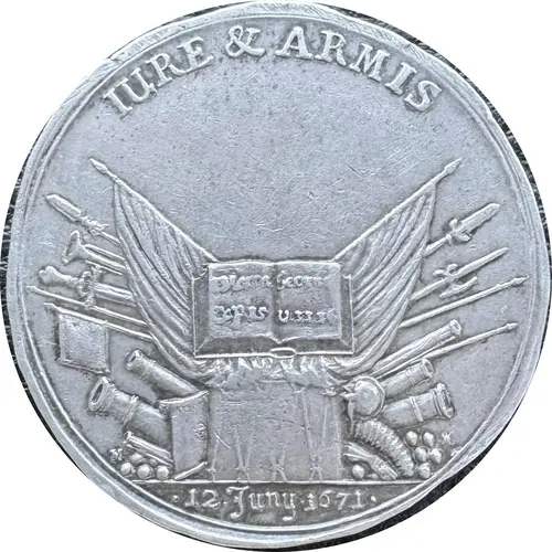 | Obverse lettering | IURE & ARMIS 1 Maccabeorum Cap. 15 V. 33, 34 12. Juny. 1671. |