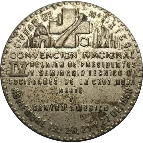 | Obverse lettering | CIUDAD DE MEXICO - CONVENCION NACIONAL - IV REUNION DE PRESIDENTES Y SEMINARIO TECTICO DE SOCIEDADES DE LA CRUZ ROJA NORTE Y CENTRO AMERICA - NOVIEMBRE 19, 20, 21 Y 22 DE 1969 |