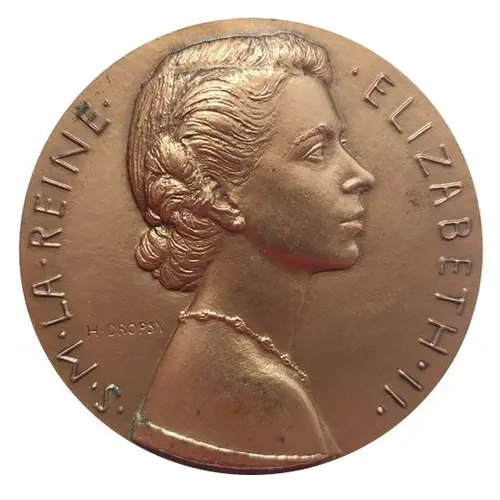 | Obverse lettering | • S • M • LA • REINE • ELIZABETH • II• D`ÉDIMBOURG • H. DROPSY (Translation: Her Majesty Queen Elizabeth II) |