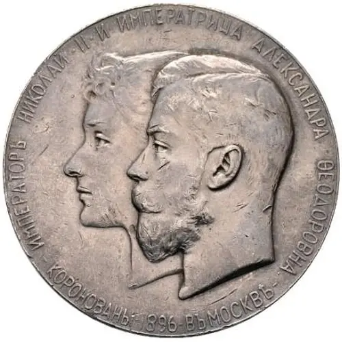 | Ön yüz lejandı | ИМПЕРАТОРЪ НИКОЛАЙ ∙ II ∙ И ИМПЕРАТРИЦА АЛЕКСАНДРА ΘЕДОРОВНА. - КОРОНОВАНЫ ∙ 1896 ∙ ВЪ МОСКВѢ (Translation: Emperor Nicholas II and Empress Alexandra Feodorovna Crowned in 1896 in Moscow) |