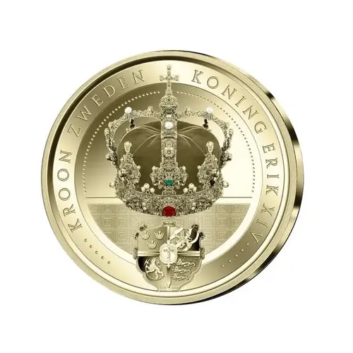 | Obverse description | It features a detailed representation of the Crown of Sweden as its central design. Below the crown, the Lesser Coat of Arms of Sweden is depicted. |