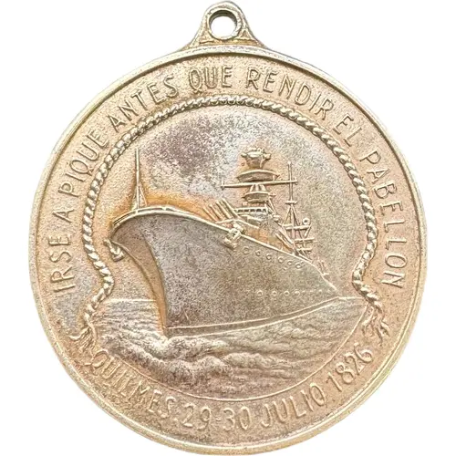 | Légende de l’avers | IRSE A PIQUE ANTES QUE RENDIR EL PABELLON QUILMES.29-30 JULIO 1826 |