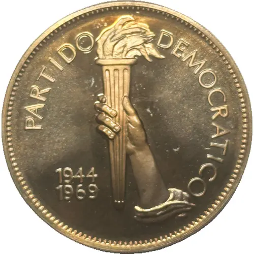 | Obverse lettering | PARTIDO DEMOCRATICO 1944 1969 (Translation: Democratic Party) |