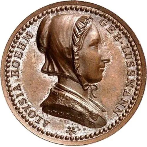 | Legenda do anverso | ALOYSIA BOEHM GEB LUSSMANN J. D. BOEHM F. |