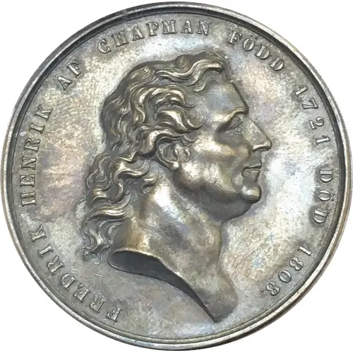| نوشتههای روی مدال | FREDRIK HENRIK AF CHAPMAN FÖDD 1721 DÖD 1808. |