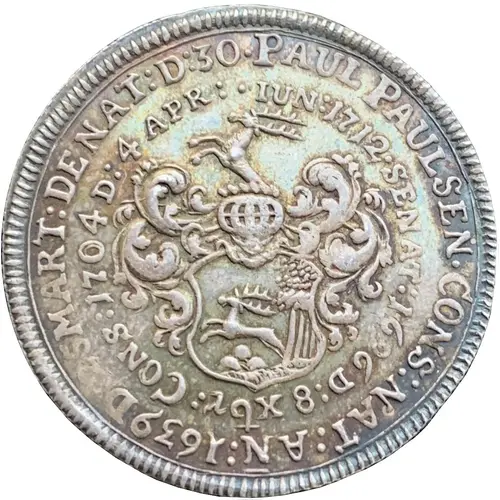| 正面铭文 | PAUL PAULSEN.CONS:NAT:AN:1639D.25MART:DENAT:D:30. IUN:1712.SENAT:1696D:8X??:CONS:1704D:4 APR: . |
