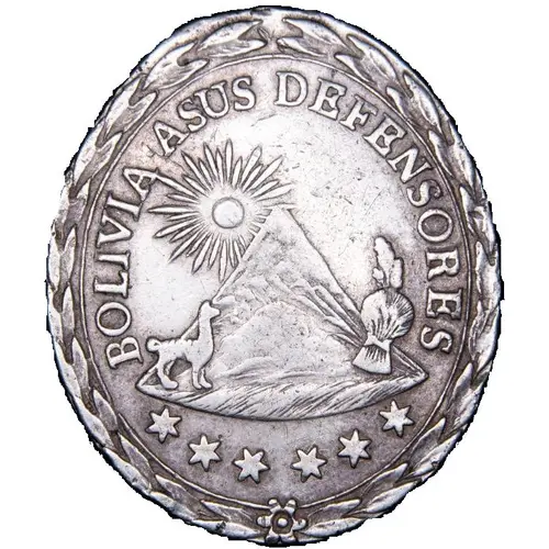 | Obverse lettering | BOLIVIA A SUS DEFENSORES |