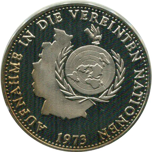 | Leyenda del anverso | AUFNAHME IN DIE VEREINTEN MATIONEN 1973 |