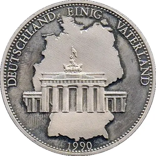 | Obverse lettering | DEUTSCHLAND EINIG VATERLAND 1990 |