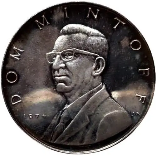 | Obverse lettering | DOM MINTOFF 1974 J.P. (Translation: DOM MINTOFF, 1974, J.P.) |