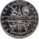 The reverse features symbols representing Europe`s landmarks and cultural icons. The design is divided into two horizontal sections: Top Section: It showcases a combination of famous European symbols: A windmill - Netherlands. The Eiffel Tower - France The London Eye observation wheel, UK. Bottom Section: It displays various other elements, including: The Alps Cologne Cathedral, Germany. Atomium, Belgium. Surrounded by 14 Stars |