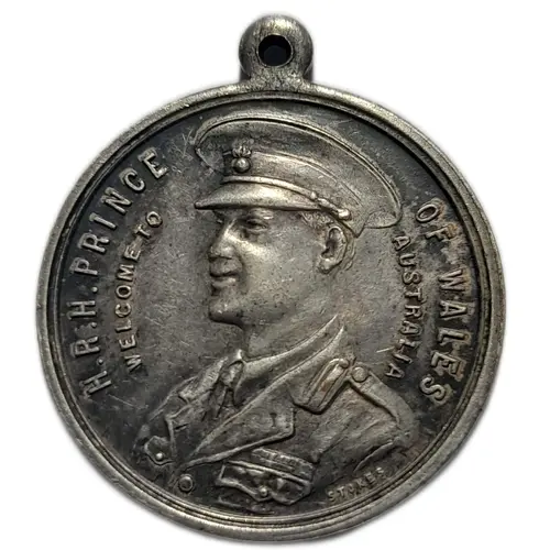 | Obverse lettering | H.R.H. PRINCE OF WALES WELCOME TO AUSTRALIA STOKES |