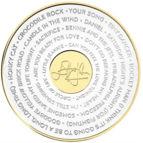 | Aversbeschreibung | Various lyrics from Elton John`s music in a spray motif around his signature. |