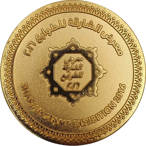 | Obverse lettering | معرض الشارقة للطوابع ٢٠١٦ معرض الشارقة للطوابع ٢٠١٦ SHARJAH STAMP EXHIBITION 2016 |