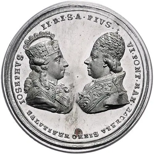 | 正面描述 | Emperor Josef II with the Roman imperial crown and Pope Pius VI with tiara. Pictured opposite each other. |