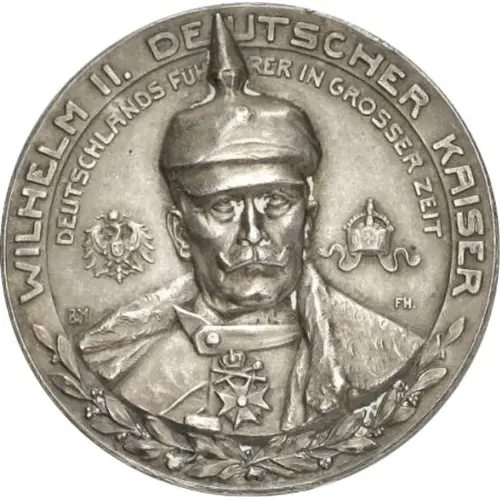 | Obverse lettering | WILHELM II. DEUTSCHER KAISER DEUTSCHLANDS FÜHRER IN GROSSER ZEIT BHM FH. |
